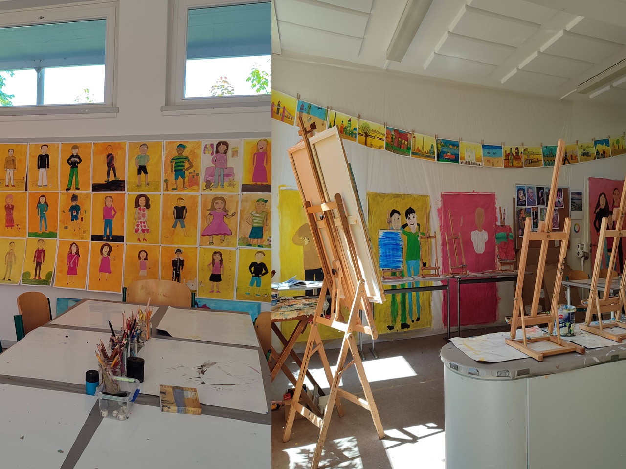 Durchführung im Klassenraum/Atelier in der Schule, der Raum steht ausschließlich der Künstlerin für das Jahr zur Verfügung.