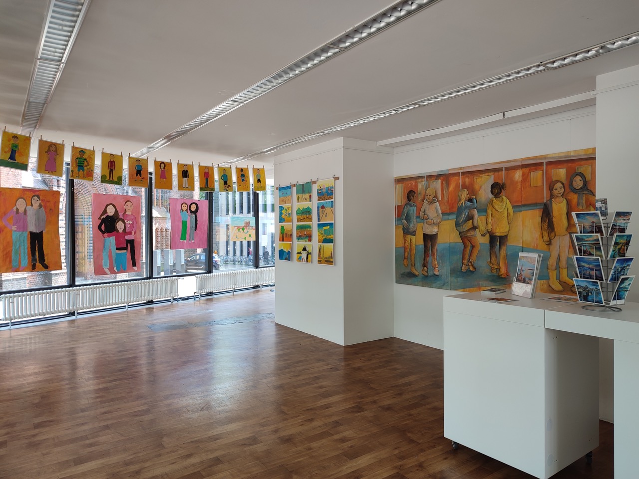 Öffentliche Ausstellung der Bilder im Pop Up Pavillon in Kiel und in der Mensa der Schule. Die 3. Klassen erstellten jeweils ein großes Wandbild in (1x9 Meter ) in der Schule.
