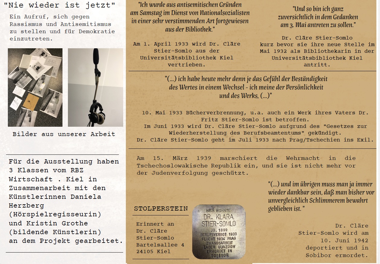 Teilnehmende des Abendgymnasiums haben einen Flyer zu Cläre Stier-Somlo und zur Audioinstallation erstellt.