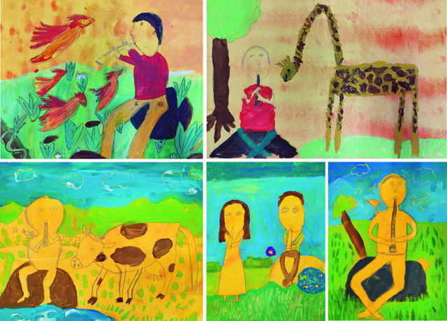 Zusätzlich dürfen weitere Klassen der Grundschule zu dem Thema des "Kleinen Flötenspielers" kreativ werden. Ihre Arbeiten erweitern im zweiten Stock des Freya-Frahm- Hauses die Ausstellung.