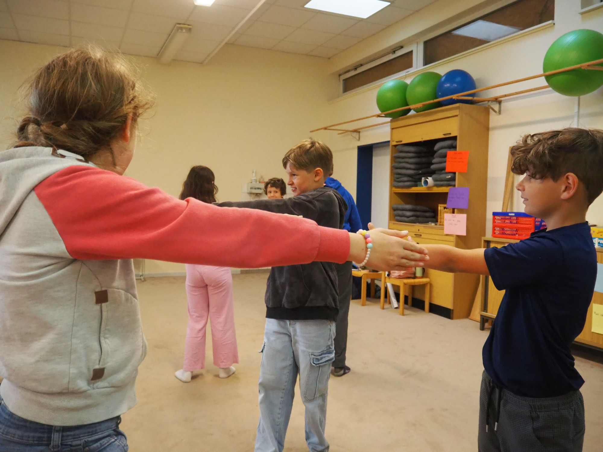 Danach bekamen sie die Aufgabe, einen kurzen Flash-Mob zu entwickeln, den sie in der Hofpause vor den anderen Schülern durchführen sollten. Es gab unterschiedliche Ideen für den Flash-Mob. Die Schüler entschieden sich für eine Abstimmung per Handzeichen. Die Mehrheit entschied sich für eine Tanzshow mit Musik. Auch bei der Musikauswahl gab es unterschiedliche Vorschläge, über die wiederum abgestimmt wurde. Gemeinsam führten sie den Flash-Mob in der Pause durch und besprachen danach, wie es war.